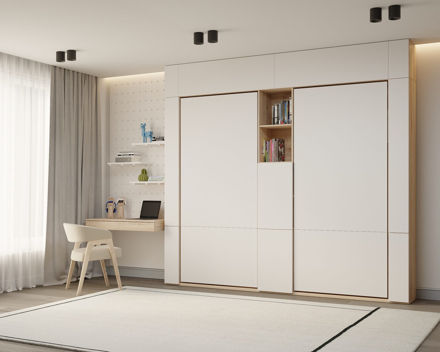 Вы можете выбрать шкаф-кровать в стандартных размерах или сконфигурировать всё под себя — точные размеры, любые фасады и ткани. Адаптируйте Scandinavia под свой идеальный интерьер.
