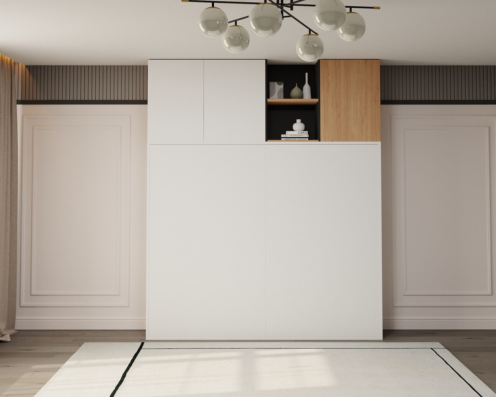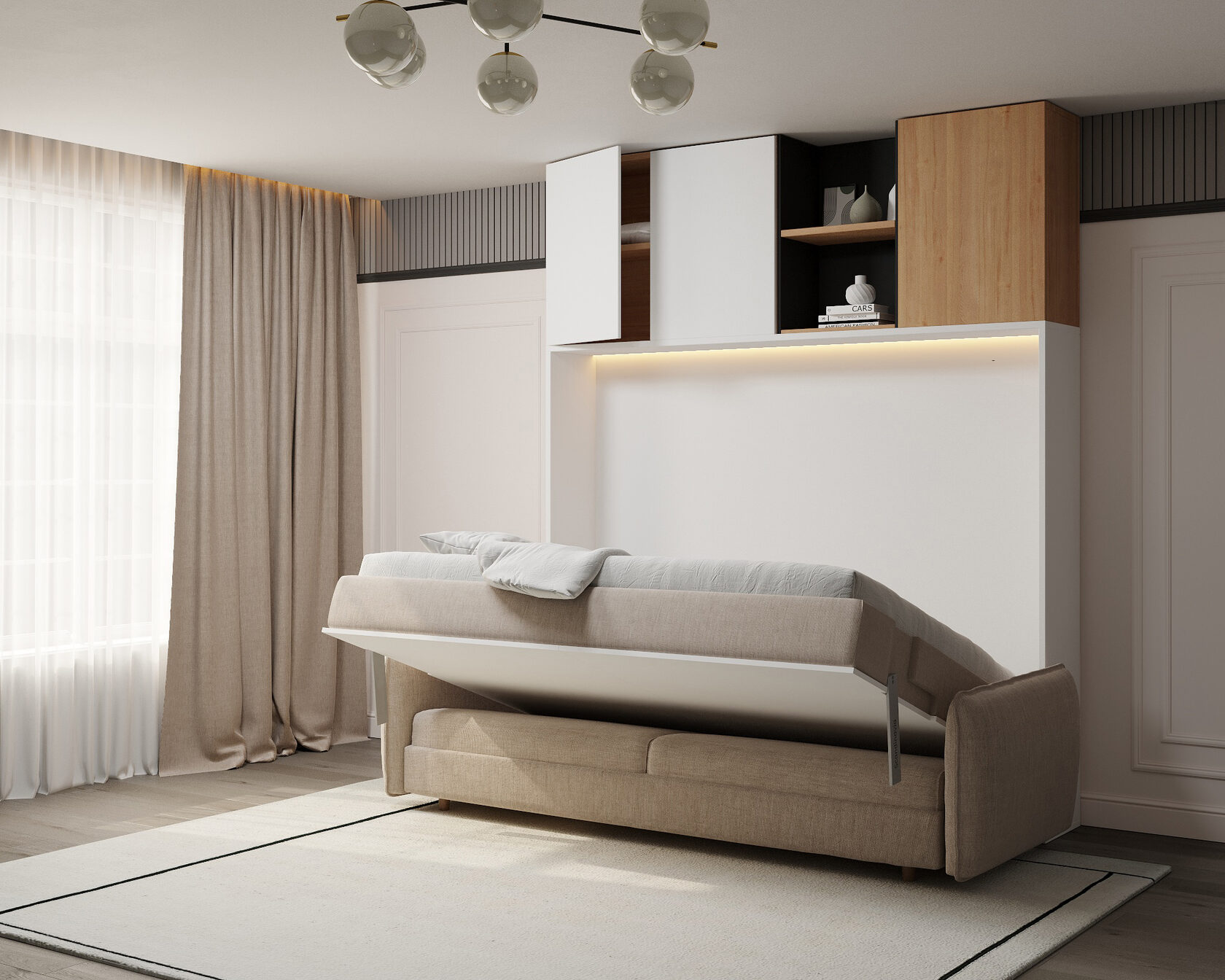 Вы можете выбрать шкаф-кровать в стандартных размерах или сконфигурировать всё под себя — точные размеры, любые фасады и ткани. Адаптируйте Scandinavia под свой идеальный интерьер.