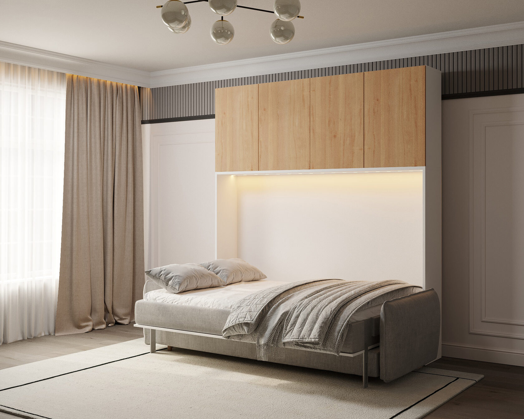 Вы можете выбрать шкаф-кровать в стандартных размерах или сконфигурировать всё под себя — точные размеры, любые фасады и ткани. Адаптируйте Scandinavia под свой идеальный интерьер.